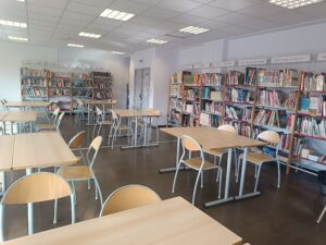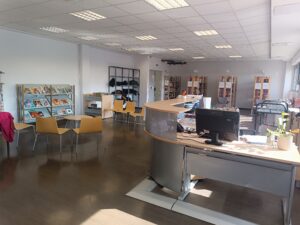 Il y a 2 salles. Dans la première, il y a les livres de fictions et les magazines ( la salle de lecture),et dans la deuxième il y a les documentaires (la salle d’étude).